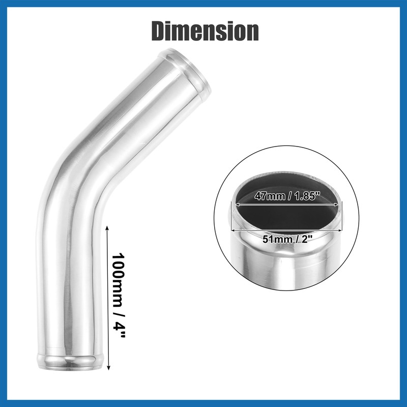 A ABSOPRO 51mm 2" OD 4" 100mm Leg Length Universal Car Aluminum Alloy Tube Intercooler Pipe 45 Degree Bend Elbow Air Intake Joiners Tubing - Pack of 2 Item Replacement