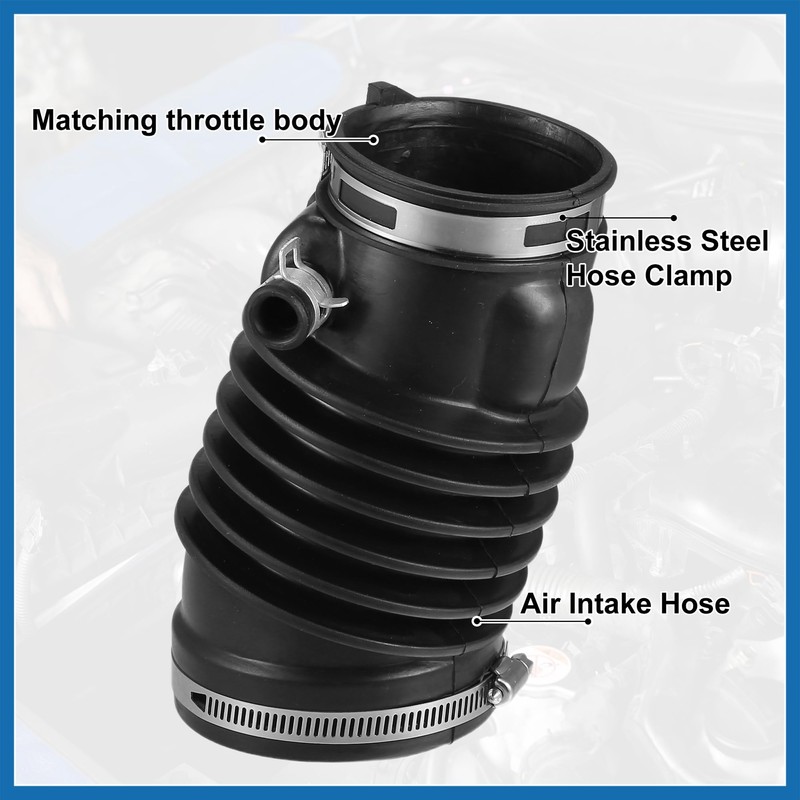The air intake hose is mounted between air intake box and throttle body on your vehicle.When the air intake hose, which is the ABS tube piece that connects the air filter box and the intake manifold, becomes old or possibly even cracks, it won't function appropriately.