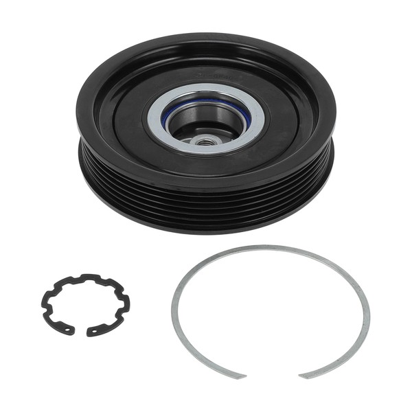 • [Package] Included: 1x Pulley With Bearing, 2x Snap Ringss. Please replace AC Clutch if met: Worn-out clutch bearing, Damaged coil or electrical failure, Physical wear on the hub or pulley, AC compressor not engaging properly.