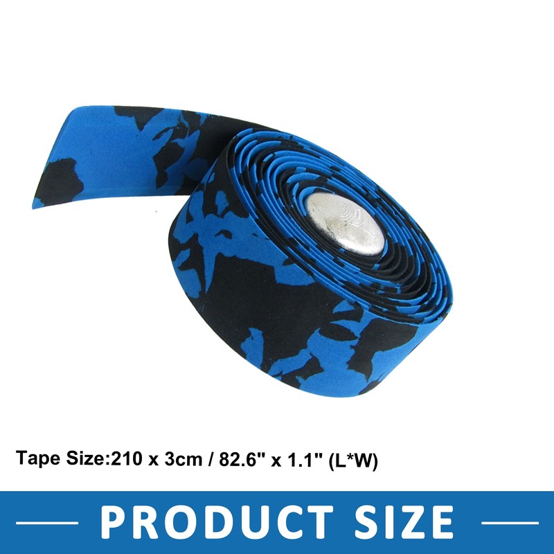 The 2 Pcs Bike Handlebar Tapes are made of faux leather and sponge material in black blue color.