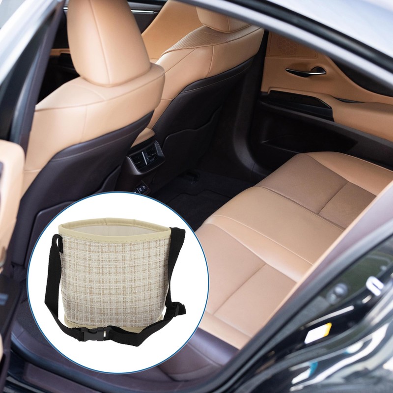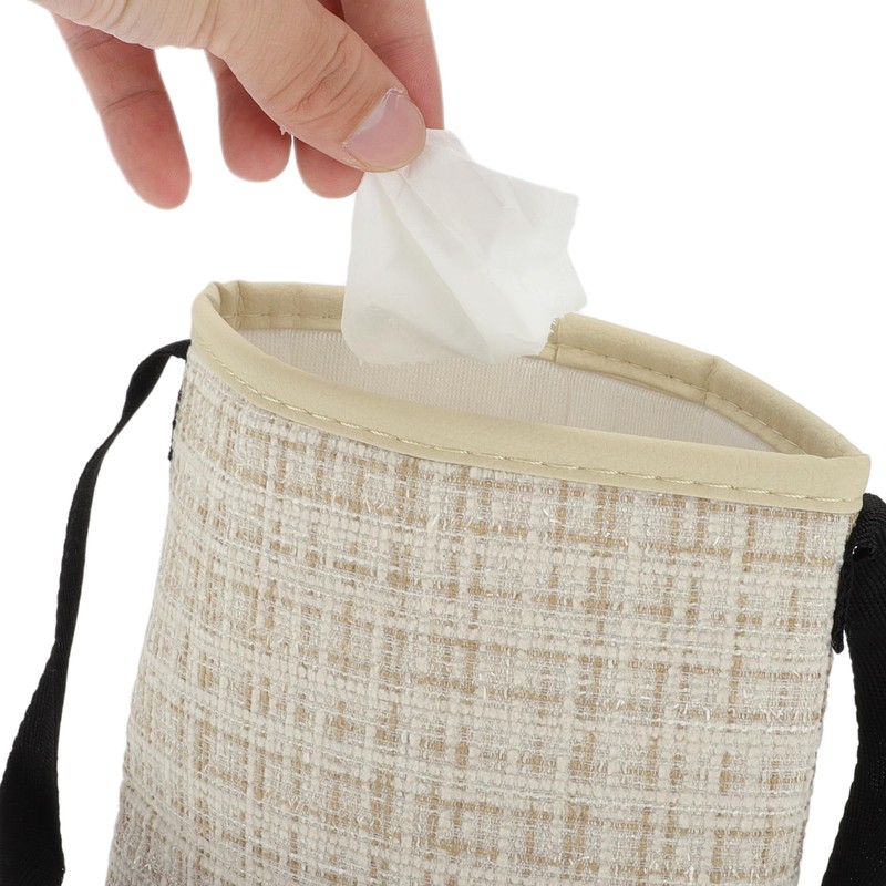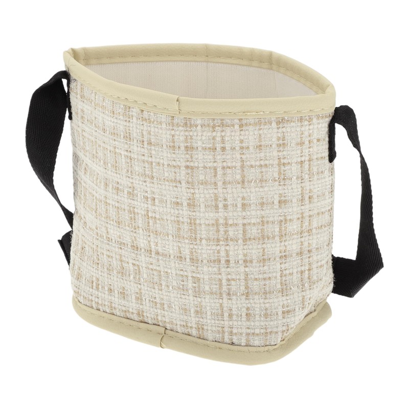 A ABSOPRO Car Trash Can Hanging and Foldable 5.9" Length 3.9" Width 5.9" Height Trash Bin Fabric Beige 1 Pcs