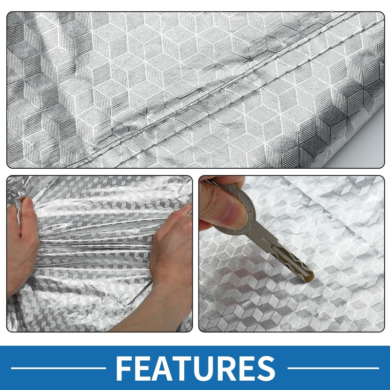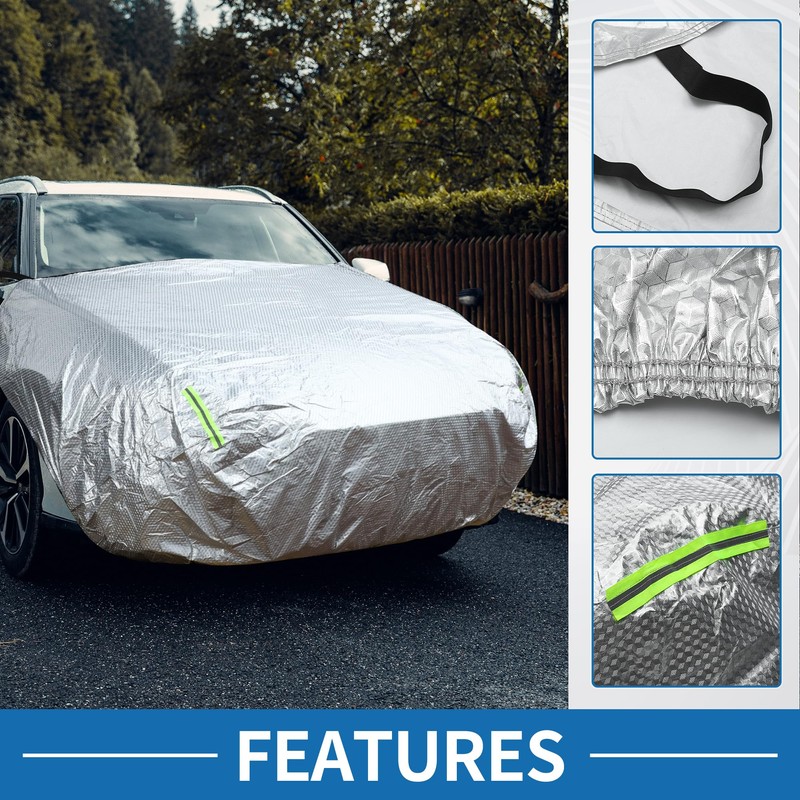 - Material - Universal Half Car Cover is made of Aluminum Film and cotton, strong, waterproof, and will not be damaged under a certain pulling force. The material is fluff-free, ensuring no residue is left on your vehicle's paint.