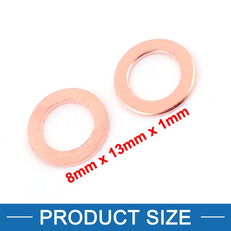 - Copper Washers - Size : 8mm x 13mm x 1mm/0.31"" x 0.51"" x 0.04""(InnerDia*OD*T)