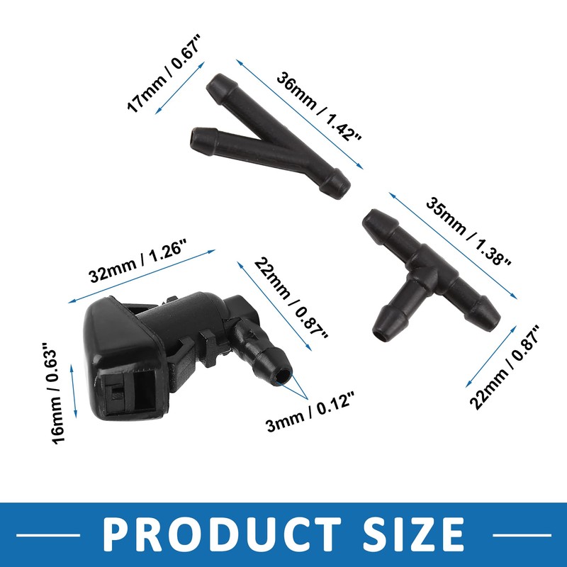 - Package List - 2 Pcs Windshield Washer Nozzle, 2 Pcs Connector, 1 Pcs Hose