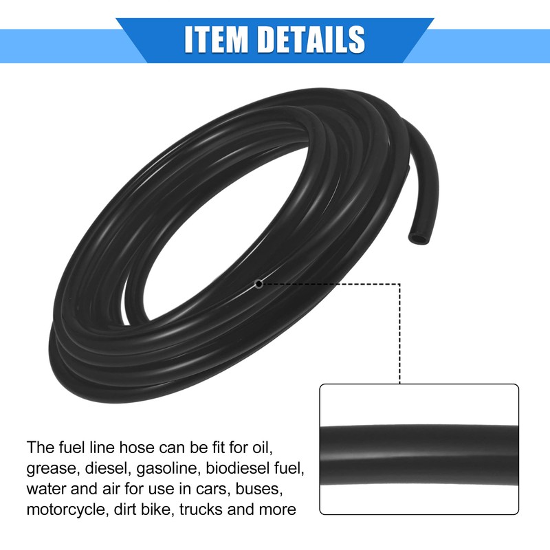 - Features: the fuel line hose is made of polyurethane material, which is not affected in sub-zero temperatures. Length: 5 m / 197 inches, inner diameter: 5 mm / 0.2 inches, outer diameter: 8 mm / 0.31 inches. Extra long can be cut to size for all your applications.