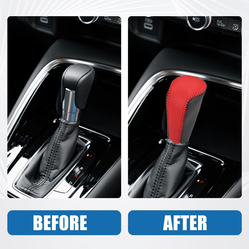 - Easy Installation - Come with needle and red thread, easy to install and replace the broken gear shift knob cover trims by hand sewing.