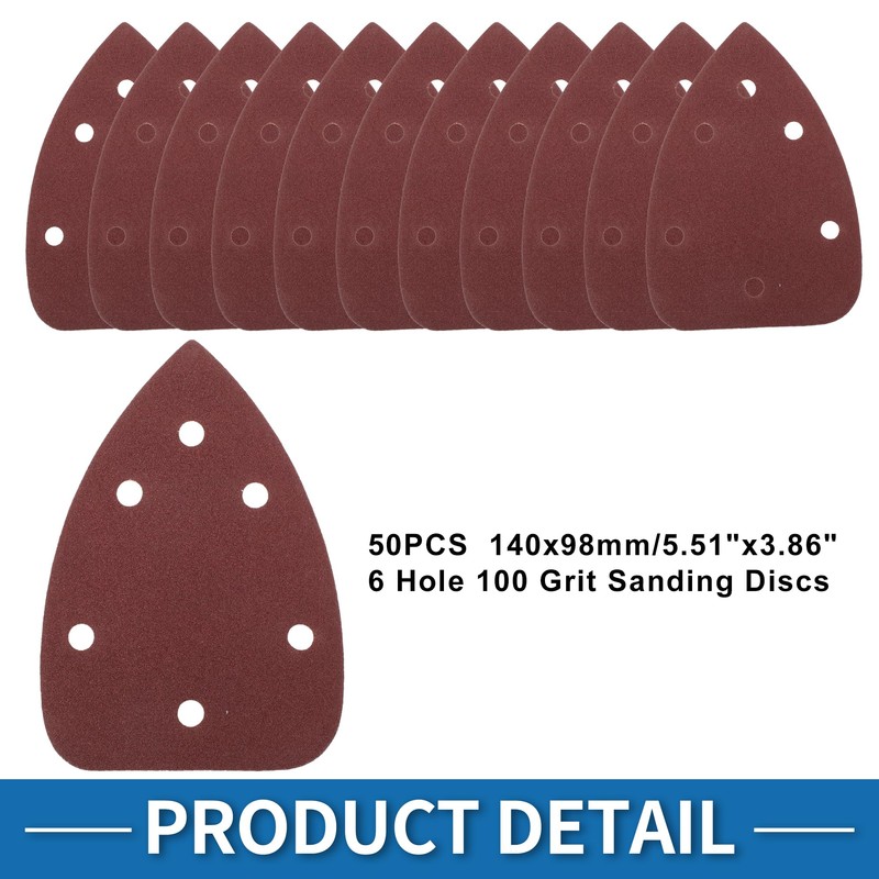 A ABSOPRO Mouse Sander Sandpaper Mouse Hook and Loop Sander Pads 5.51Inch x 3.86Inch Red 50 Pcs P100 Triangular Backed with Velvet