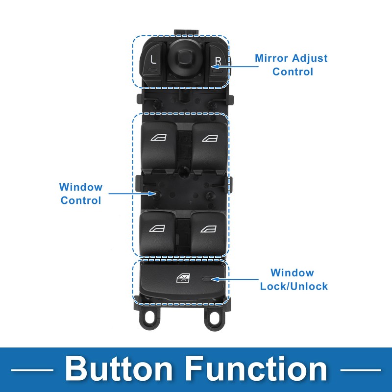 - Product Information:Power window switch is used to raise or lower the windows in your vehicle. Button Function: Window Lock/Unlock, Window Control, Mirror Adjust Control