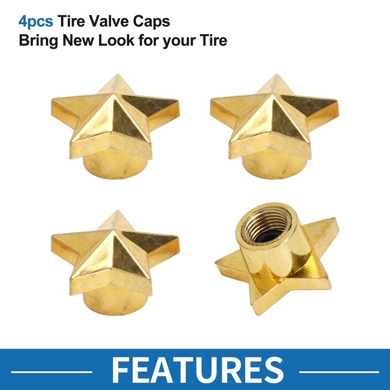 - Package List - 4 Pcs Car Tire Valve Stem Caps, Gold Tone, Star Shape.