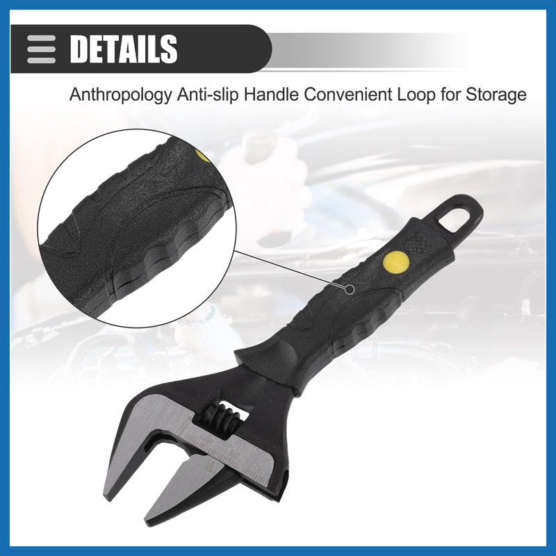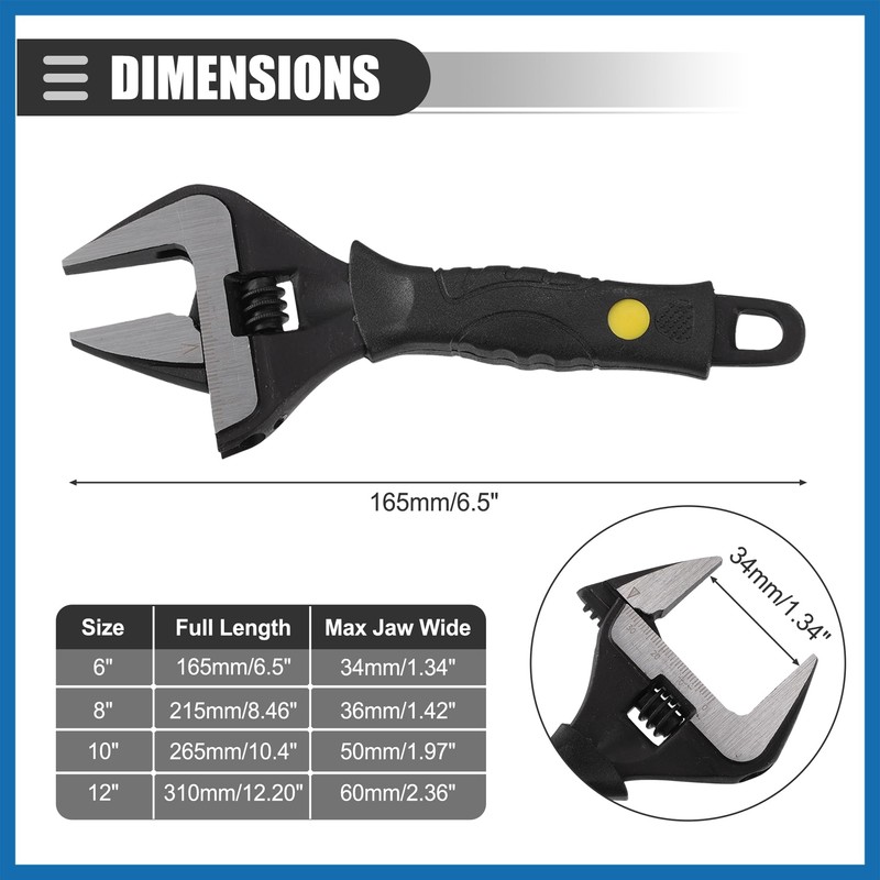 A ABSOPRO Universal Adjustable Spanner Wide Jaw Opening Wrench Automotive Tool Set, 6" and 8" Size Max Jaw Width 34mm and 36mm, Steel, Black Item Replacement