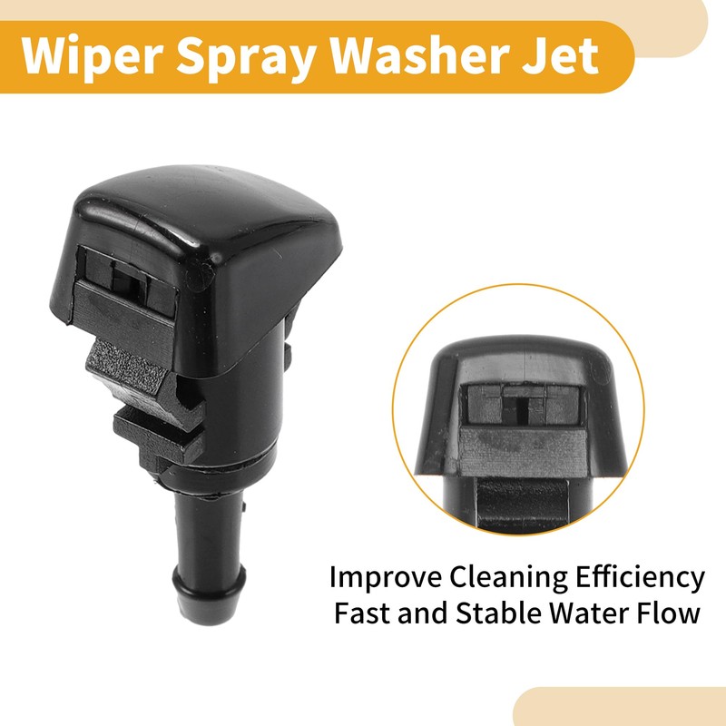 Directly replace the old or broken windshield spray nozzles.Replace your windshield washer nozzle if it's broken, cracked, clogged beyond repair, or won't stay aimed correctly.Our front windshield nozzle wiper spray is designed to spray away during automated car washes and snow and ice removal. Quick spraying windshield and restoration of clear view, contributes to driving safety and extend the wiper blade life time.The wiper spray washer jet is made of Plastic material. Durable, can provide you stable and efficient water spraying effect