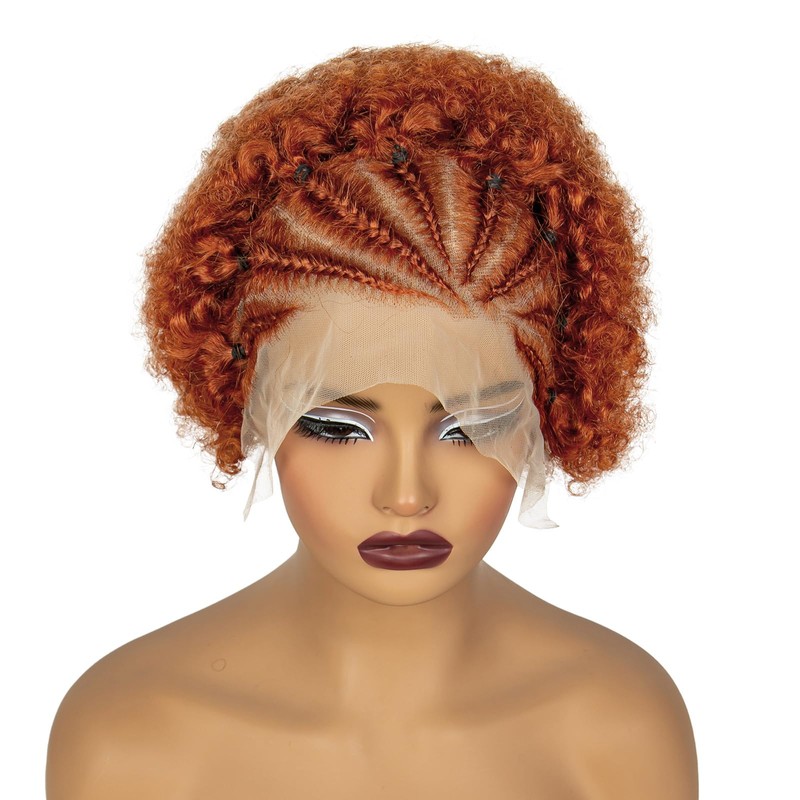 A ANYTIME 250% Density Ginger Orange Short Afro Kinky Curly Human Hair Wigs with Braids 13x4 HD Transparent Lace Frontal Bouncy Curly Bob Wig for Women(350#)