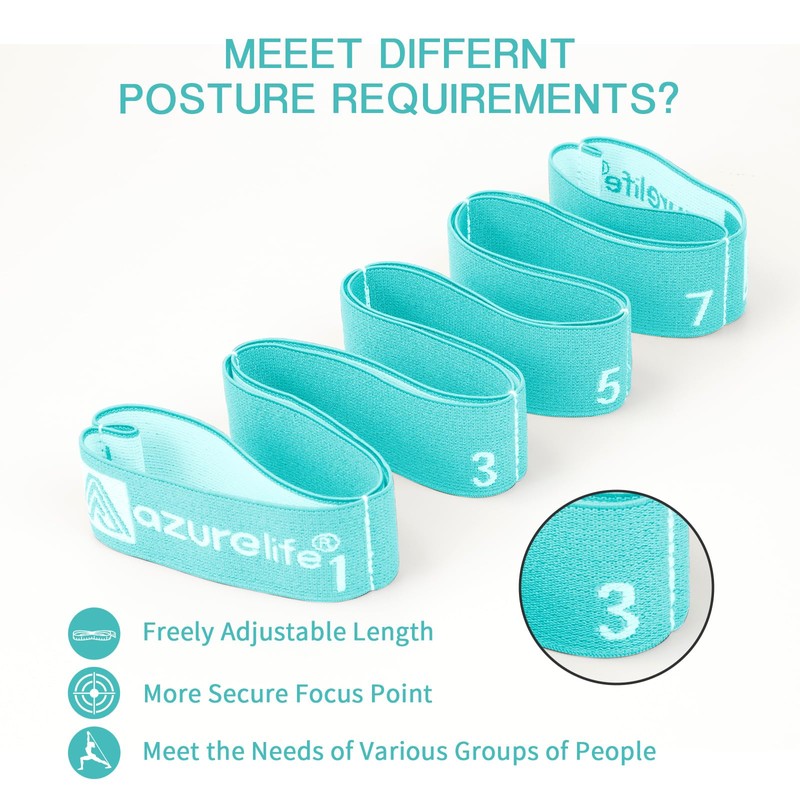 A AZURELIFE Premium Durable Stretch Straps with Loops, Stretching Strap for Physical Therapy, Multi-Loop Yoga Strap Fitness Exercise Strap for Yoga, Pilates, Dance, Flexibility&Exercise