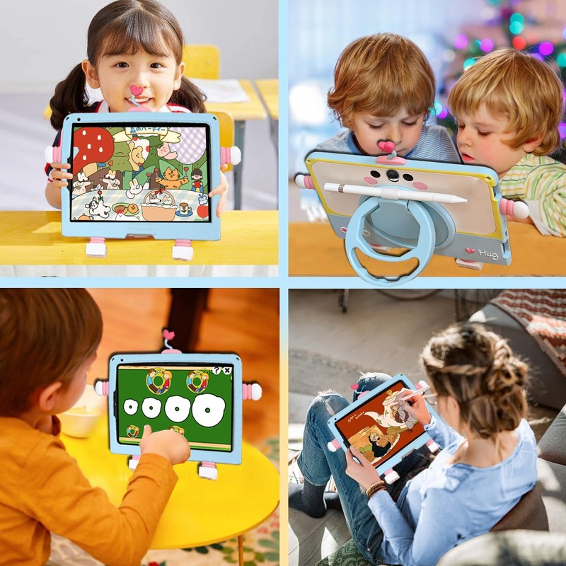 - Stable Stand Support: 360 degree rotating stand for tablet offers an adjustable viewing and typing angles. The 360° rotating handle stand of the case are designed friendly to children's hands, it is easy for them to grip and carry the handle