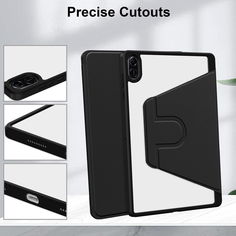 A-BEAUTY Rotating Case Compatible with Honor Pad X8a 11 Inch 2024 with Pen Holder, 360° Rotation Protective Stand Cover Clear Back, Shockproof Case, Black