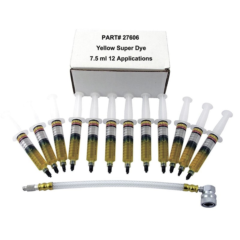 - Price For: Each Includes: (12) 1/4 Oz. Syringes, (1) Installation Hose Application: Each Syringe Treats 1 Vehicle, 12 Vehicle Treatments total. Allows easier, quicker and cleaner filling of any type injector. Product does not come in contact with moisture in air.Billable unit reduces waste and allows precision measurement of product. Number of Pieces: 13 Item: A/C Dye Syringes Kit
