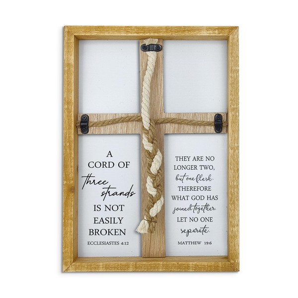 A Cord of Three Strands Wedding Sign 15"X10" Three Strands Braid Wall Decor Anniversary Religious Gifts for Couple Cross to Braid or Tie God's Knot, Symbolic of Unity (Wood)