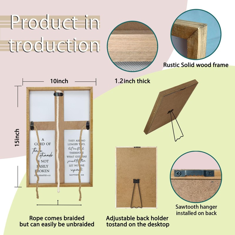 - 【Premium Wedding Signs】: This is an wedding unity sign. This wooden wall crosses features the verse "Matthew 19:6 "They are no longer two, but one flesh Therefore what God has joined together, let no one separate".