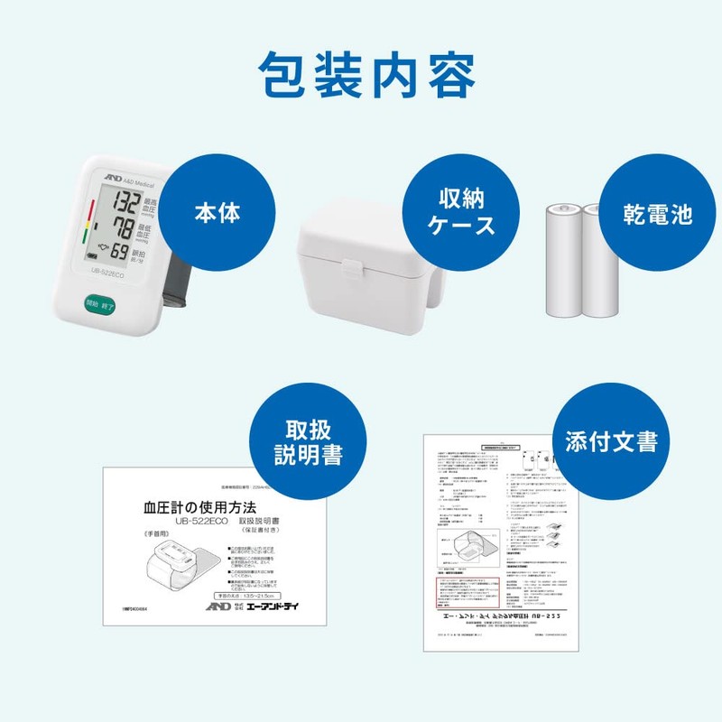 A&D Webモデル 手首式 血圧計 UB-522ECO 簡単ワンボタン操作 ケース付