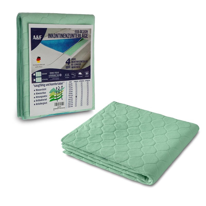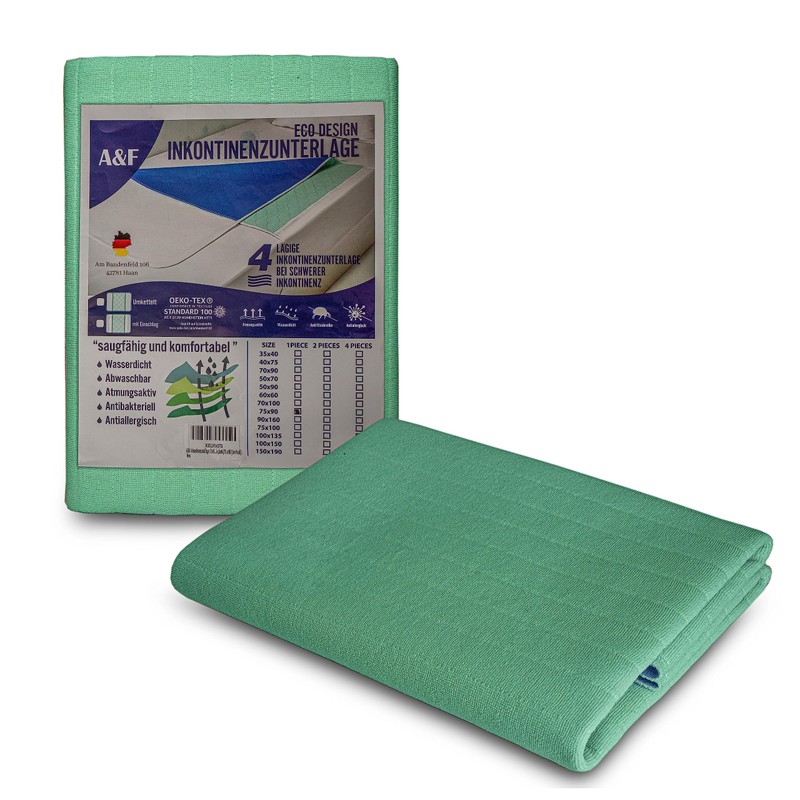 A&F Incontinence Pad 100 x 135 (1 Pack) - 4 Layers - Up to 26280 ml/m² Absorbency - Washable Incontinence Pad - Mattress Topper Suitable for Adults Bed
