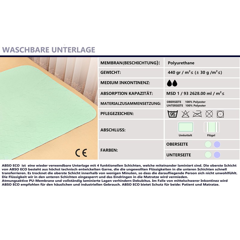- Extreme suction power – breathable: the mattress cover absorbs up to 26280 ml/m2 of liquid per square metre. It is still breathable and protects against bedsores / bedsores.