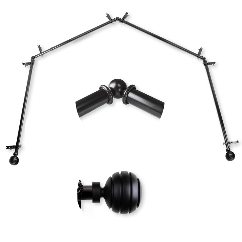 A&F Rod Décor - Dipper 13/16" 4-Sided Bay Window Curtain Rod 28-48 inch (Each Side) - Black