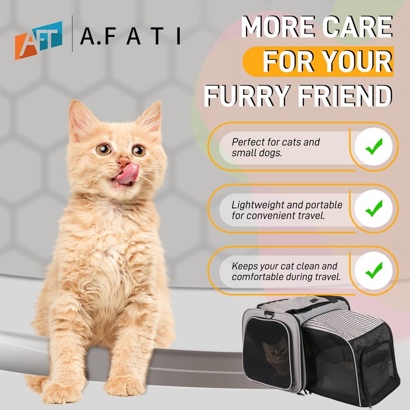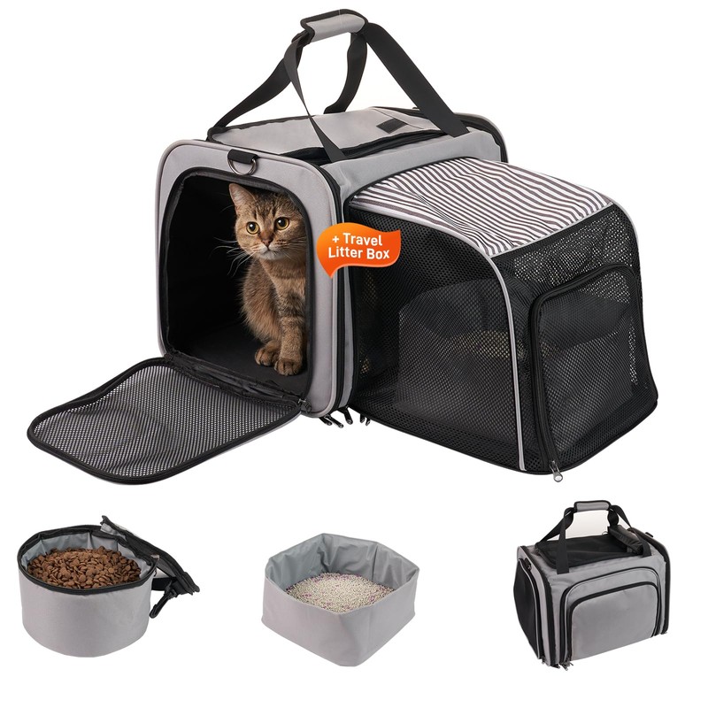 - Cat Travel Carrier with Litter Box: Easy for road trips and hotel stays with cats. Cat carriers with portable folding trash can help your cat have enough space during travel