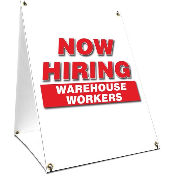 A-Frame Sidewalk Now Hiring Warehouse Workers Sign with Graphics On Each Side | 18" X 24" Print Size