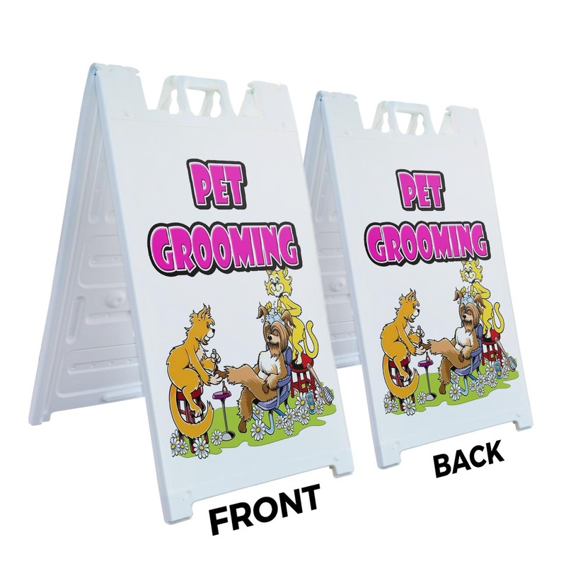 A-Frame Sidewalk Pet Grooming 24" x 36" Double Sided A-Frame Sidewalk Sign, Includes 2 Plastic Inserts | Foldable Portable White Signicade Sandwich Board Signs