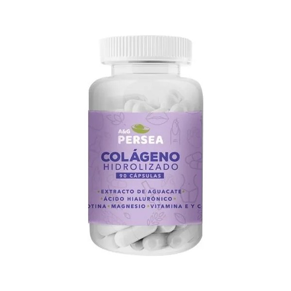 A&G Persea - Capsulas De Colageno Con Biotina 90 Capsulas, Con Magnesio, Extracto de aguacate, Vitamina E y C, sin sabor
