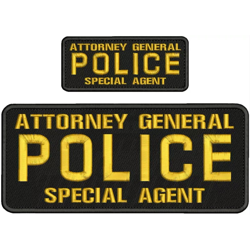 A G POLICE S AGENT EMBROIDERY PATCH 4X10 & 2X5 HOOK ON BACK GOLD ON BLACK