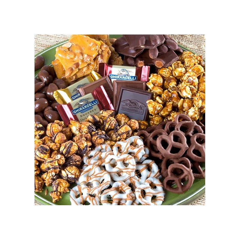 Our most popular gourmet gift basket is filled with both traditional and dark chocolate caramel corns, plus lots of crunchy chocolate-covered and caramel treats to share, all in a keepsake high-quality seagrass basket and tied with a Happy Birthday ribbon.