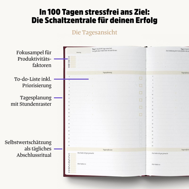 - Success journal for 100 days – success without burnout is possible. Learn how to plan correctly, retain your motivation and avoid procrastination. The mindful productivity planner is perfect for bachelor and master theses, business ideas, renovations, your own book and large projects of any kind.