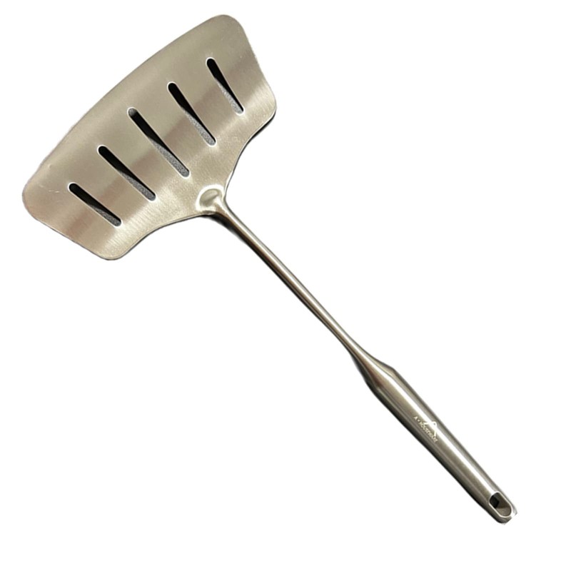 - 304 STAINLESS STEEL WIDE SLOTED SPATULA designed specifically for all your cooking needs. The wide slotted design allows for easy handling of various foods, while the high-quality stainless steel construction ensures durability and longevity. The comfortable grip of the spatula makes it a pleasure to use, whether flipping burgers on the grill or stirring pasta in a hot pot. Upgrade your kitchen utensils with this versatile and reliable wide big spatula