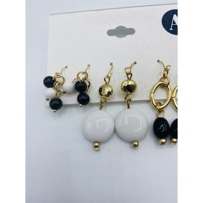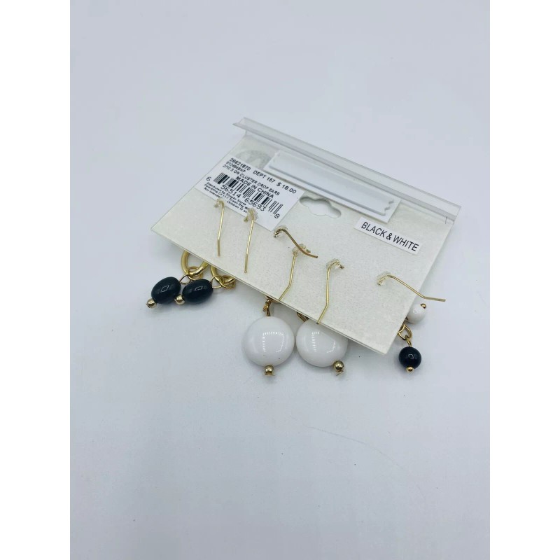 A&J Button Black White Gold Cluster Drop Earring NWT