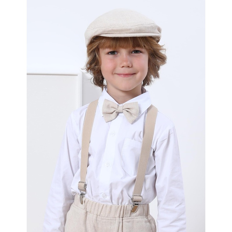 A&J DESIGN Boys Suspenders and Bow Tie Set Newsboy Hats School Casual Formal Beige 6-8 Years