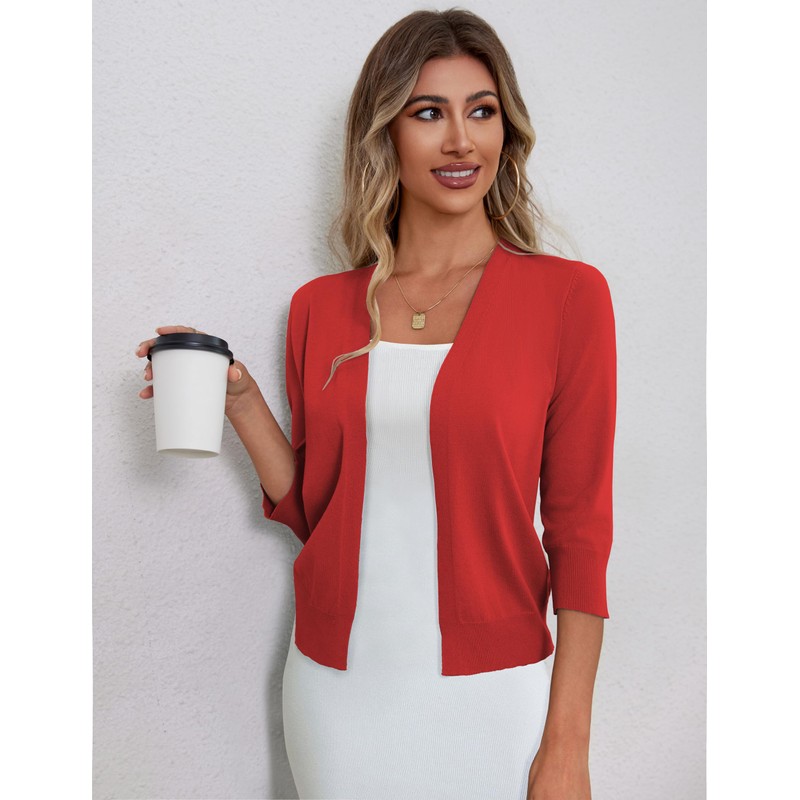 a.Jesdani Shrugs for Women Lightweight 3/4 Sleeve Open Front Red Cropped Cardigan Sweaters,L