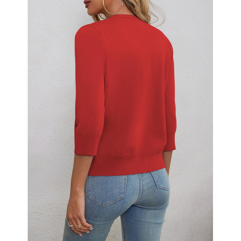 - Classy 3/4 sleeve open front shrug cardigan for women