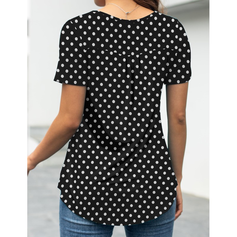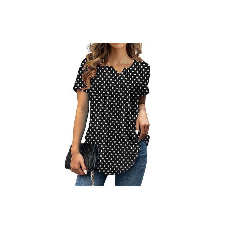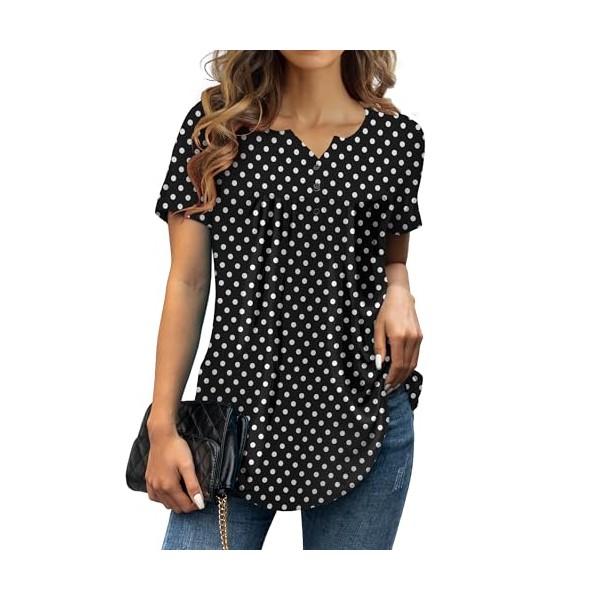 a.Jesdani Womens Plus Size Tops Tunic Short Sleeve Henley V Neck Shirts Casual Soft Blouse Black Polka Dot 3X