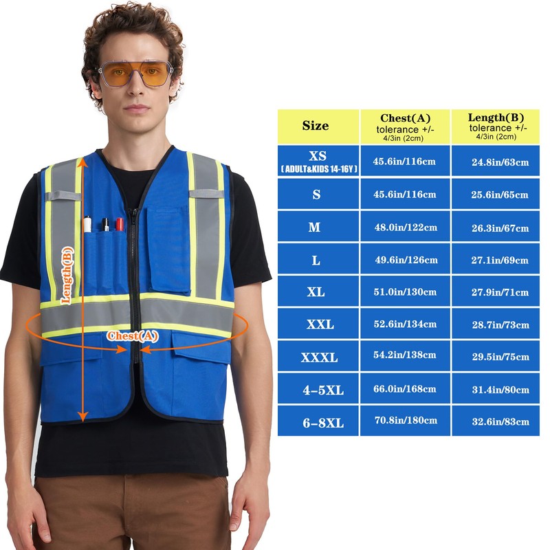 A-KSAFETY High Visibility Safety Vest for Men Women with Pockets and Zipper, Blue, Medium