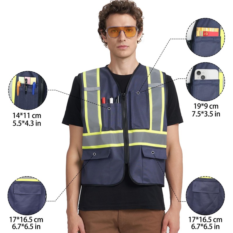 A-KSAFETY Navy Hi Vis Vest with Pockets