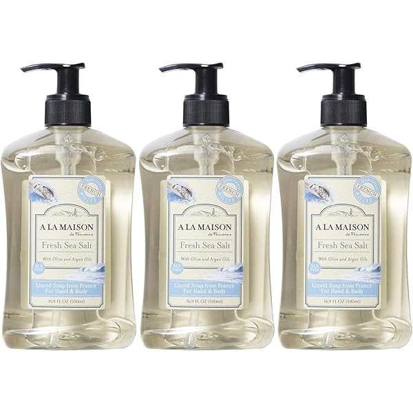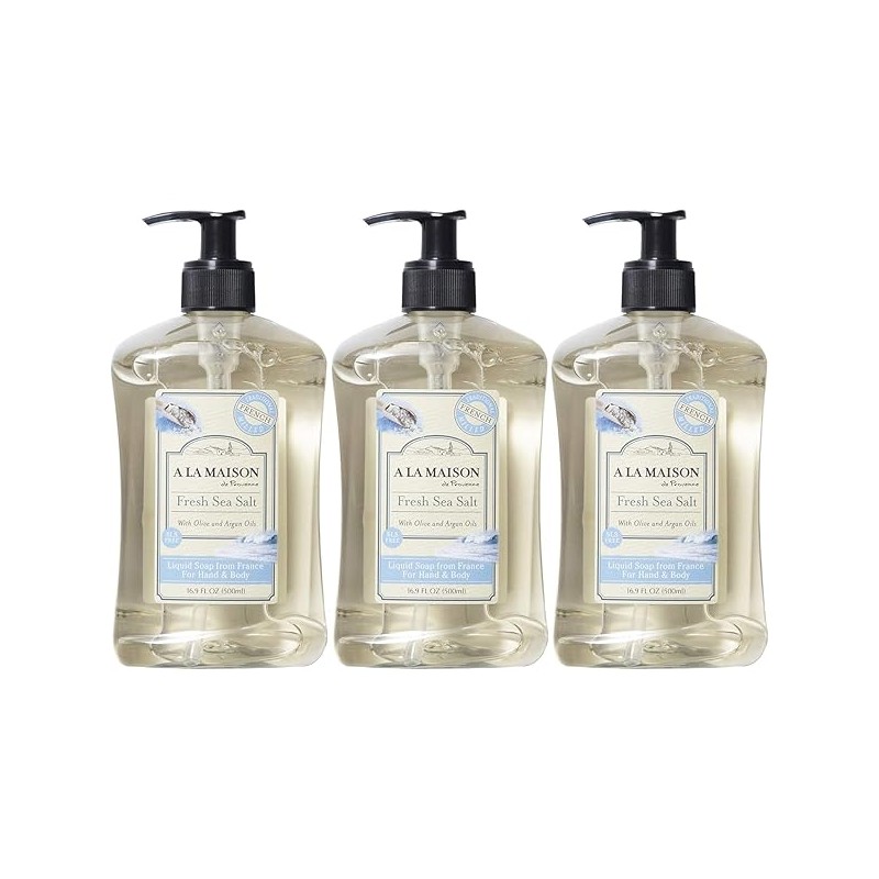 A LA MAISON French Liquid Hand Soap and Eco-Friendly Fresh Sea Salt, 3 pack 16.9 Fl Oz.