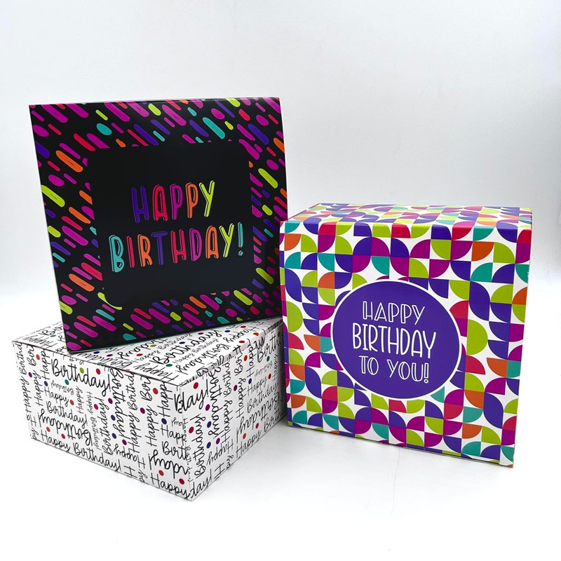 - Happy Birthday Boxes 3-Pack Assorted Styles, size 8x8x4 inches, cardboard, gift box