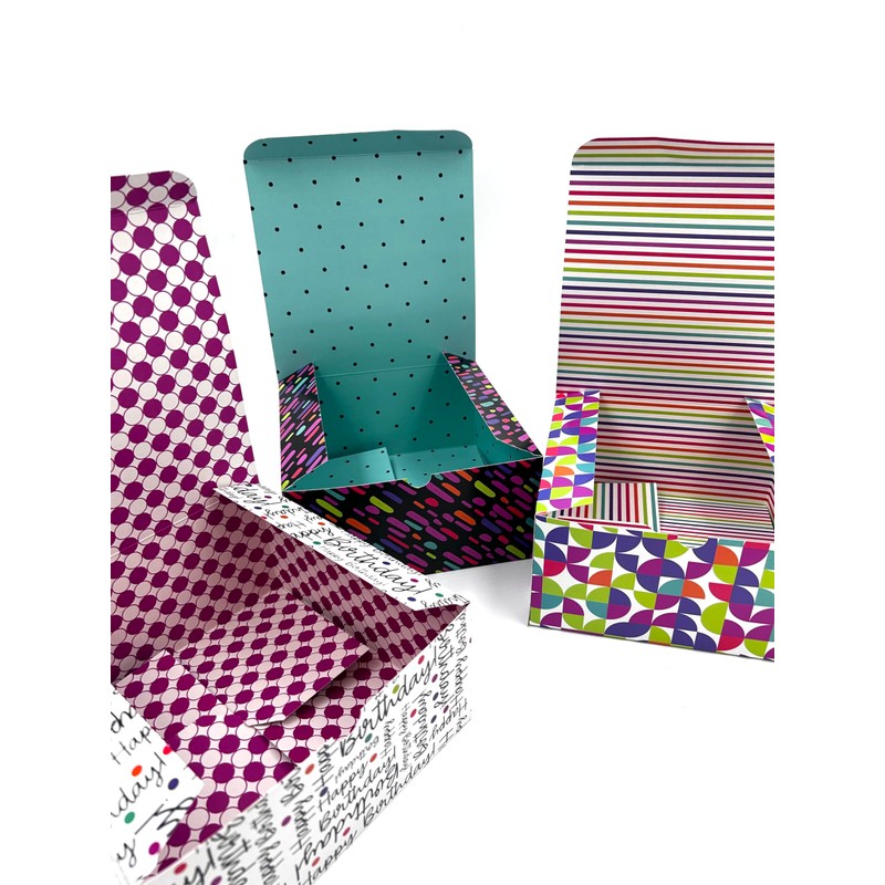 A Little Extra Co Happy Birthday Boxes 3-Pack Assorted Styles, size 8x8x4 inches, cardboard, gift box