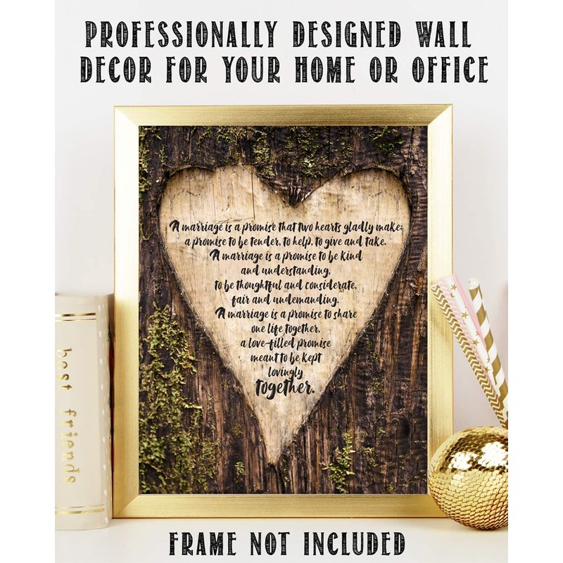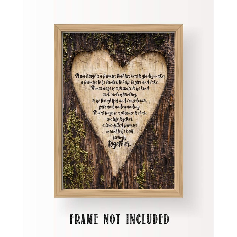 "A Marriage Is a Promise" Inspirational Love Quote Wall Art - Unframed 11 x 14 Tree Heart Photographic Print - Makes a Great Gift for Family and Friends under $15