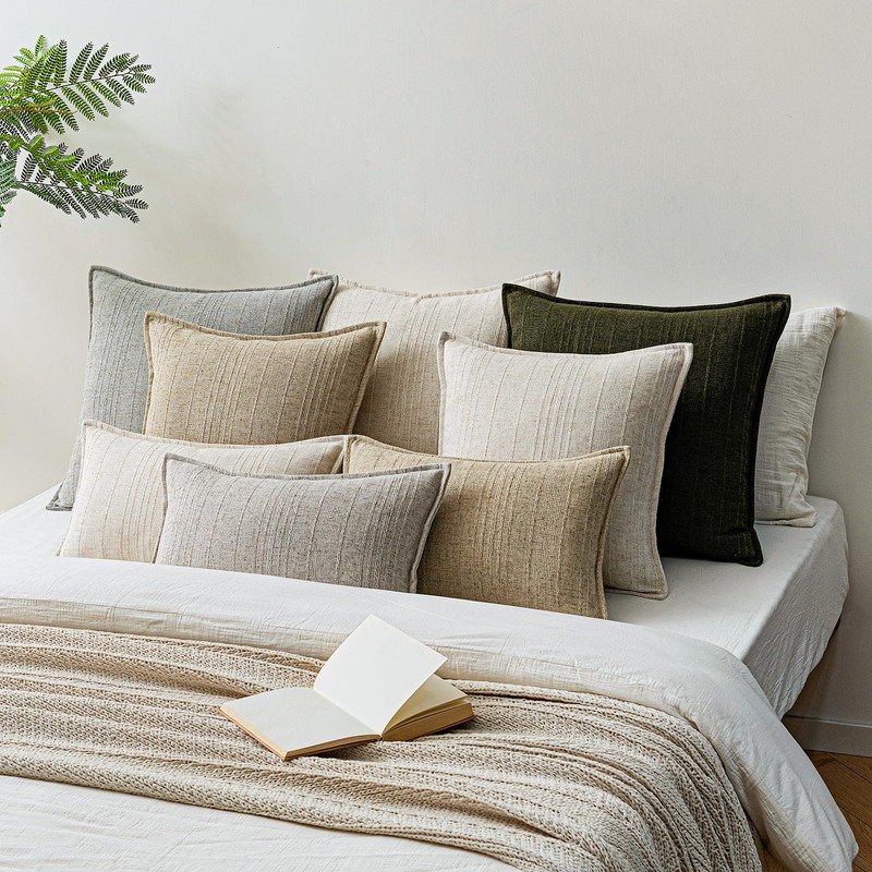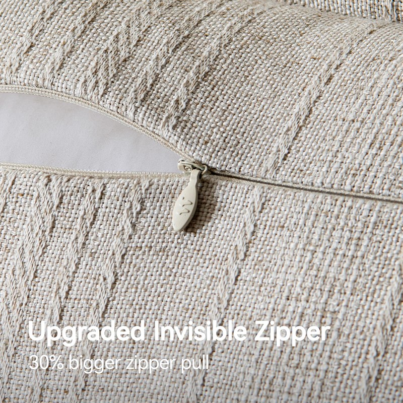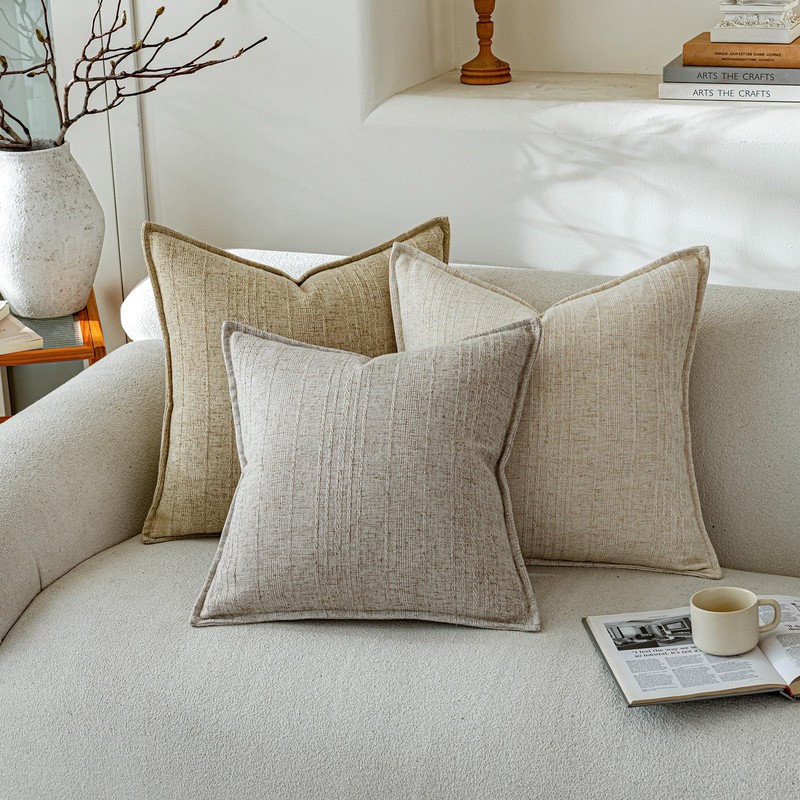 • Boho Striped Linen Pillow Covers: Featuring textured stripes and decorative flange edges, these linen covers have reinforced seams with heavy-duty stitching. The boho-inspired design adds visual interest through subtle stripes while maintaining a clean, modern look.