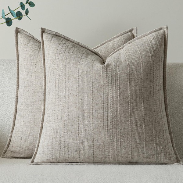 a moment Linen Pillow Covers Set of 2,Boho Farmhouse Throw Pillowcases Neutral Textured Decorative Covers for Couch Sofa Bed, Soft Linen Blend Accent Case Cushion Home Decor 20"x20"Natural Linen
