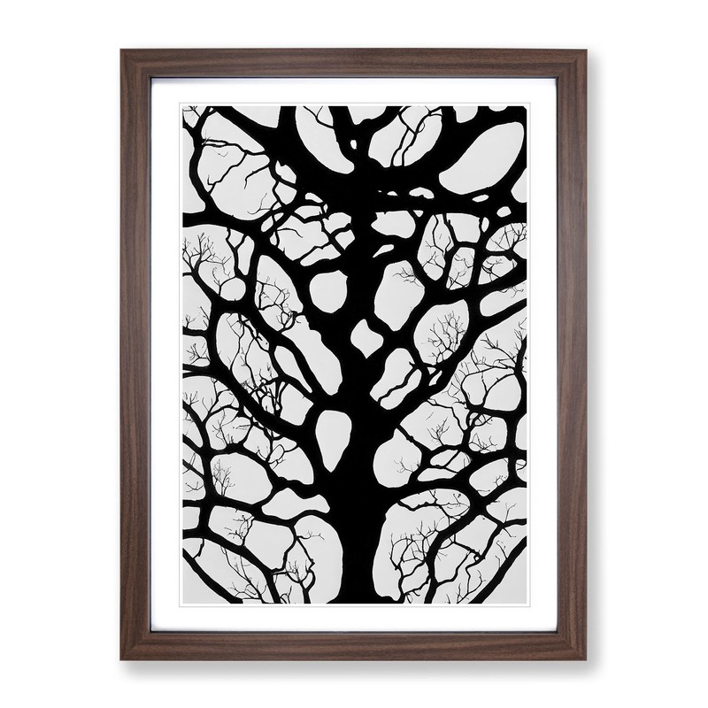 A Monochrome Tree No.4 Framed Print for Living Room Bedroom Home Office Décor, Wall Art Picture Ready to Hang, Walnut A4 Frame (34 x 25 cm)