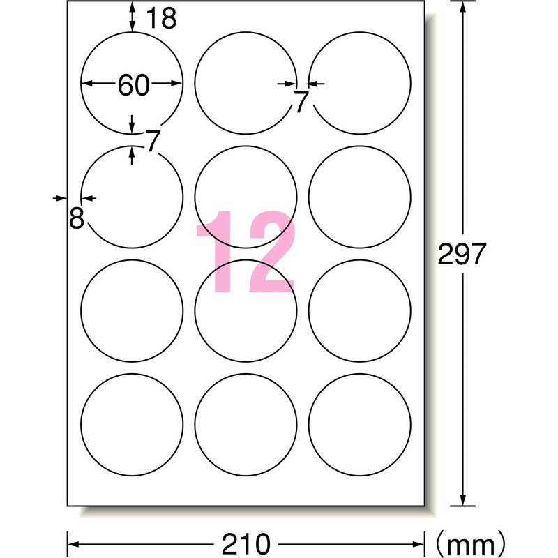 - Sheet Size: A4 (11.7 x 8.3 inches (297 x 210 mm)); Single label size: φ 2.4 inches (60 mm)