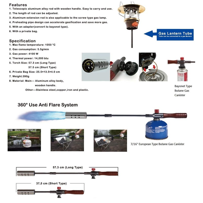 - Aluminum extension rod is also applicable to the screw type gas lamp.